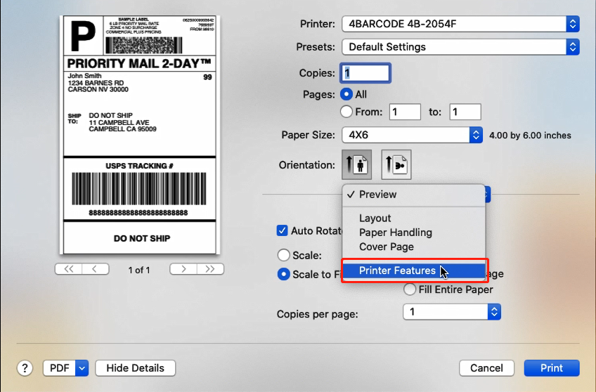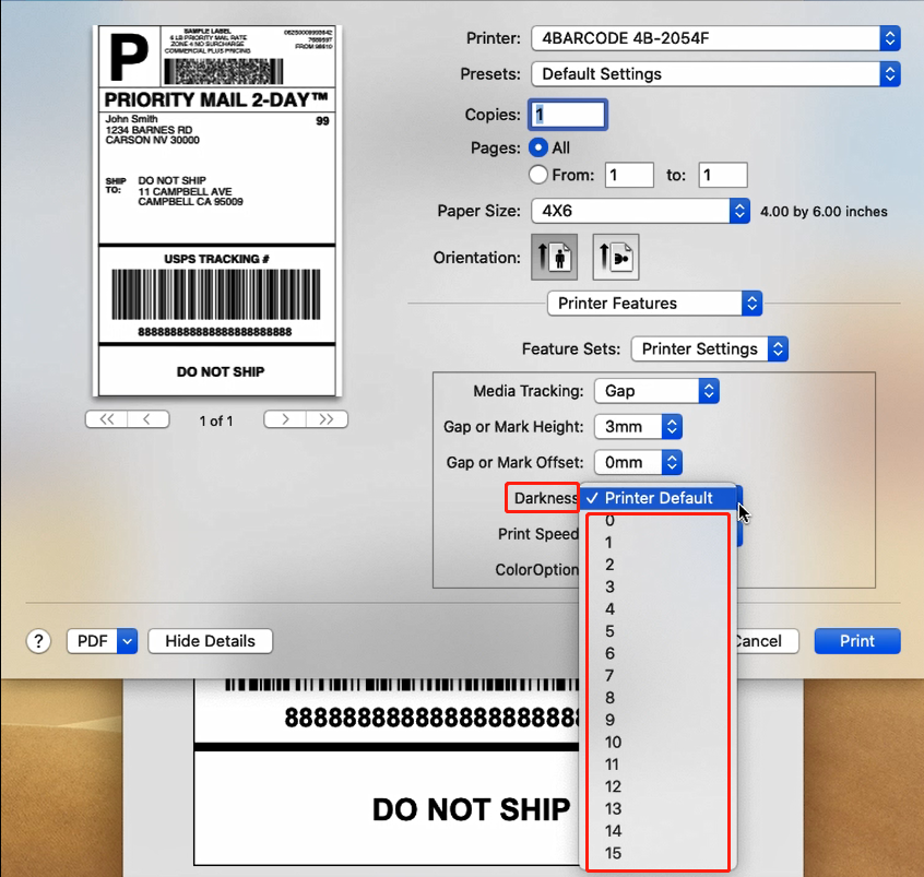 You can download the sample label from USB Driver:
