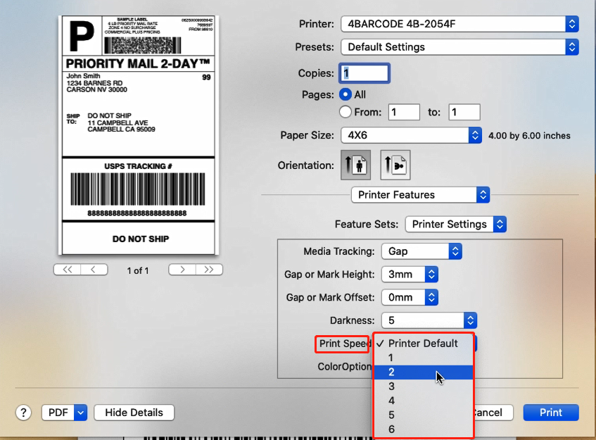 Solution: Try reducing your print speed (try 3 in/sec) and density (try 3 as well) to see if you get a better result.